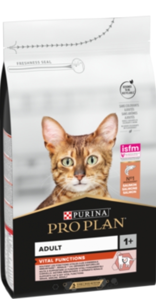 PURINA PRO PLAN VITAL FUNCTIONS is made with high-quality Salmon pieces as the first ingredient, enriched with Vitamin E, C and beta-carotenes, long-chain Omega-3 fatty acids and Arginine to support strong immune system and urinary health of your cat. The product contains special ingredients proven to slow the aging process and to support executive brain functions, like logical thinking, problem solving, memory function and adapting to new situations.